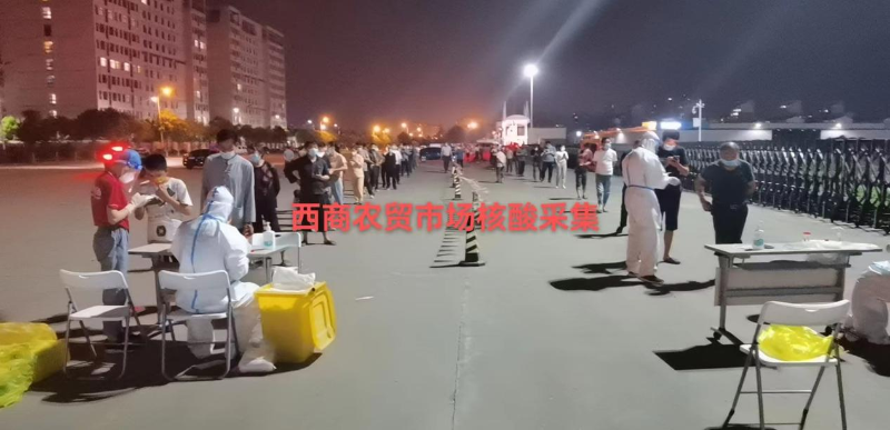 在西商农批市场,封控黄码经营人员,转运红码人员,落实全员核酸检测,共计检测4000余人次,严控卡口管理,实行扫码、证件通行。同时为周边低风险区菜农开辟专属绿色区域,采取点供户销方式,降低接触配送风险。为商户办理通行证250余张,满足市内商超蔬菜配送供应。