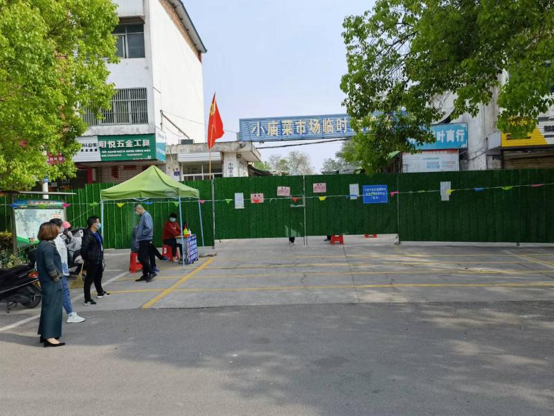 在双桥露天农贸市场,落实责任主体,实行封闭管理,定时开放,安排志愿者卡口值守,安排荤菜经营户驱车送卖至村、组、户。