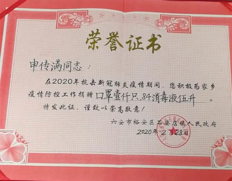 企业是开发区防疫工作的第二个战场,在开发区管委的统一部署下,各部门安排专人对区内所有企业实行包保。申传满又勇挑重担、双线作战,共包保了长安冲压制品、力源机械等6家企业。他第一时间奔赴6家企业分别张贴了《六安开发区致各企业的一封信》和《六安市新型冠状病毒感染的防控明白纸》,并嘱咐各企业负责人一定要做好防护工作,即使这样他仍然不放心,经常通过电话、微信等方式核实了解包保企业的复工时间、人员动向和健康状况。