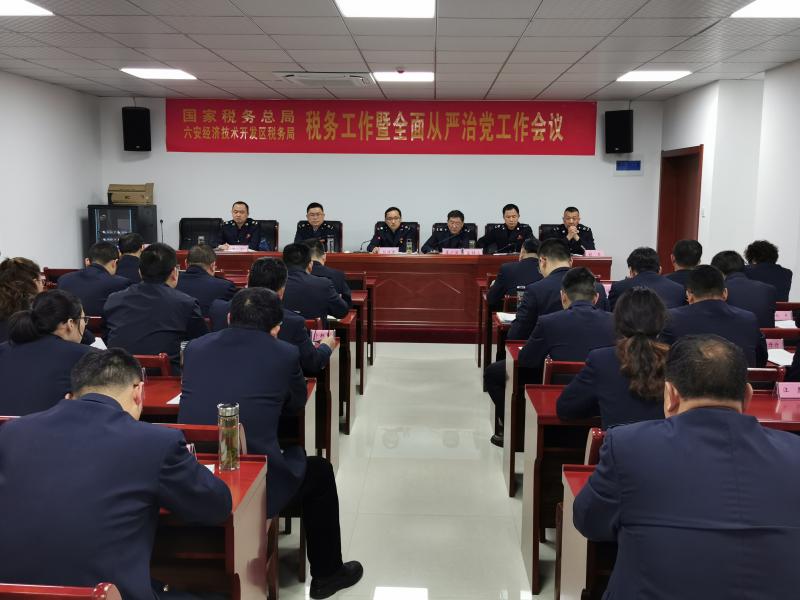 4月9日上午,开发区税务局在区局新会议室召开税务工作暨全面从严治党工作会议。会议以习近平新时代中国特色社会主义思想为指导,认真贯彻落实全国、全省、全市税务工作会议精神和开发区工委管委决策部署,总结开发区2020年和“十三五”税收工作,研究“十四五”发展思路,部署2021年工作任务;全面贯彻十九届中央纪委五次全会以及全国和全省、全市税务系统全面从严治党工作会议精神,总结2020年开发区税务局全面从严治党工作,部署2021年重点工作任务。区局党委书记、局长杨晓东作题为《同心同向 砥砺奋进 在高质量推进税收现代化中展现新作为》的税务工作报告以及题为《坚定不移全面从严治党 推动六安经济技术开发区税收事业高质量发展》的全面从严治党工作报告。