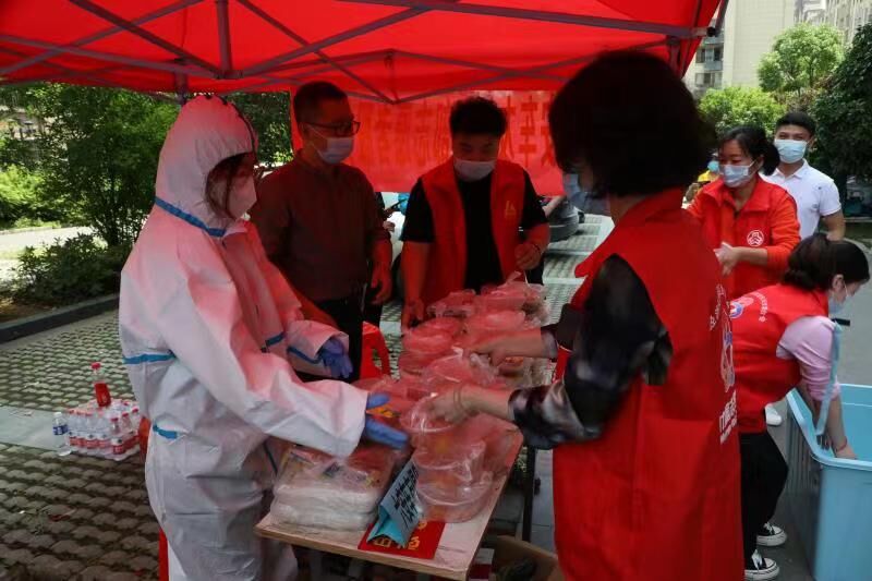 5月21日中午,六安经济技术开发区九仙尊、兴林机械、佳宝服饰、佳隆食堂、辰宇机械等区内5家企业妇联的巾帼志愿者,将200多份爱心午餐分别送到疫情防控指挥部、白鹭洲社区、皋陶社区、杭淠湾社区和部分防控点位,让奋战在疫情一线的工作人员吃上卫生可口的热饭菜。