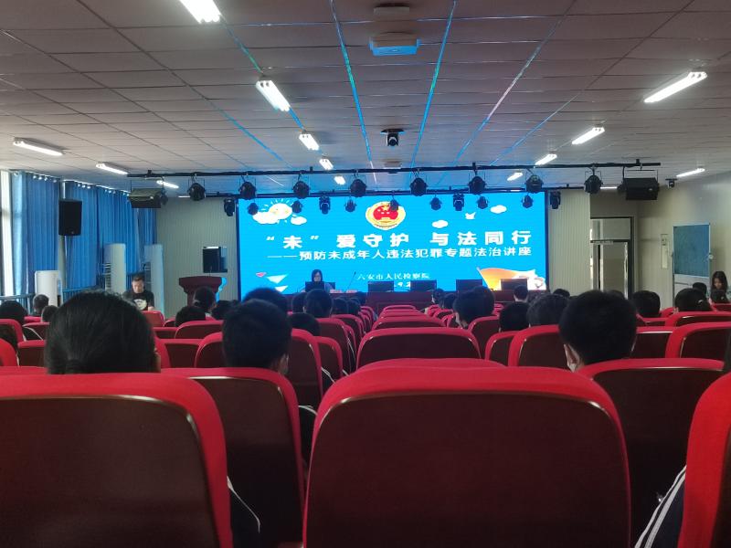 为预防未成年人违法犯罪,增强未成年人法纪意识,提升自我防护能力,优化未成年人成长环境。9月28日下午,六安开发区团委邀请六安市人民检察院一行来到皋城中学东校开展以“未”爱守护 与法同行为主题的预防未成年人违法犯罪专题法治讲座进校园活动。