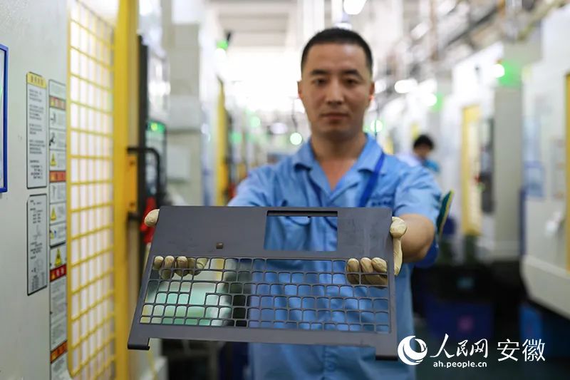 六安市舒城县,胜利精密生产的笔记本结构件。人民网 张俊摄