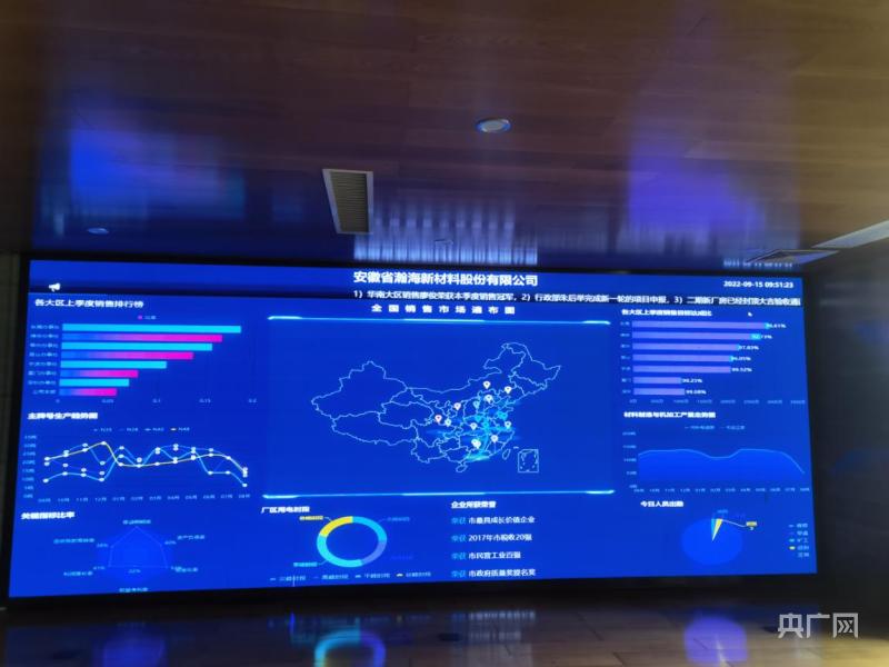 瀚海新材料用以展示、分析产品销售动态的数据化大屏(央广网记者 周然 摄)