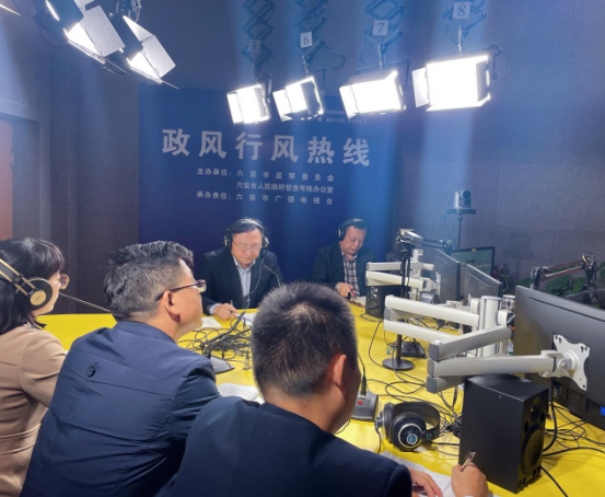 10月13日,六安开发区工委委员、管委副主任黄胜红率队走进六安广播电视台《政风行风热线》节目直播间,与广大听众朋友在线互动交流,发展改革局、经贸科技局、财政局、招商局等部门负责人参加。