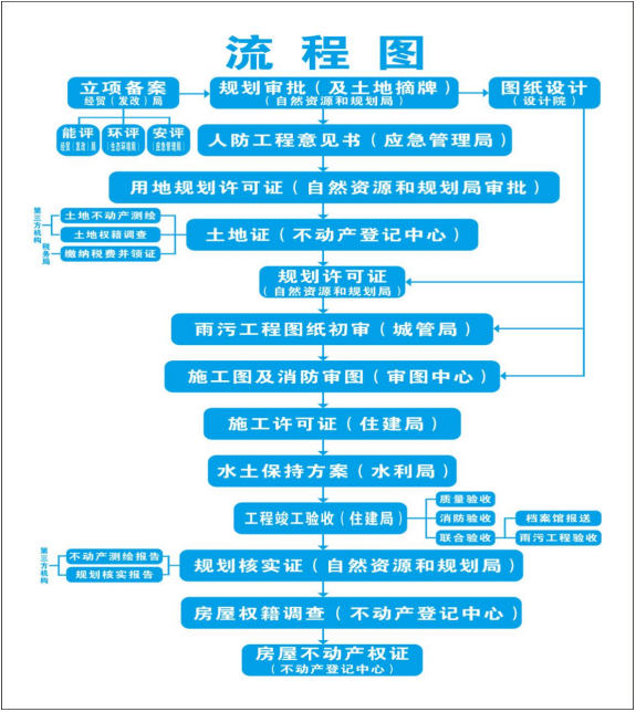 服务程序:受理→审查施工图建筑方案及相关报建资料→审批→核发