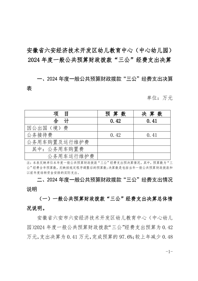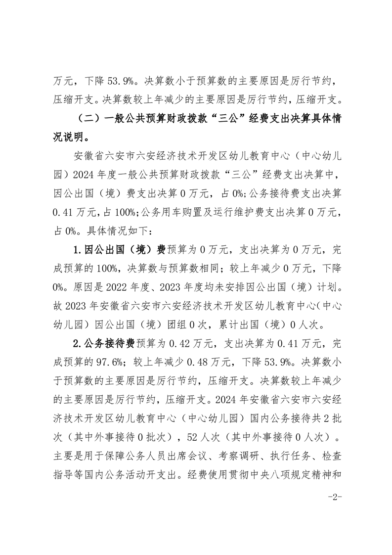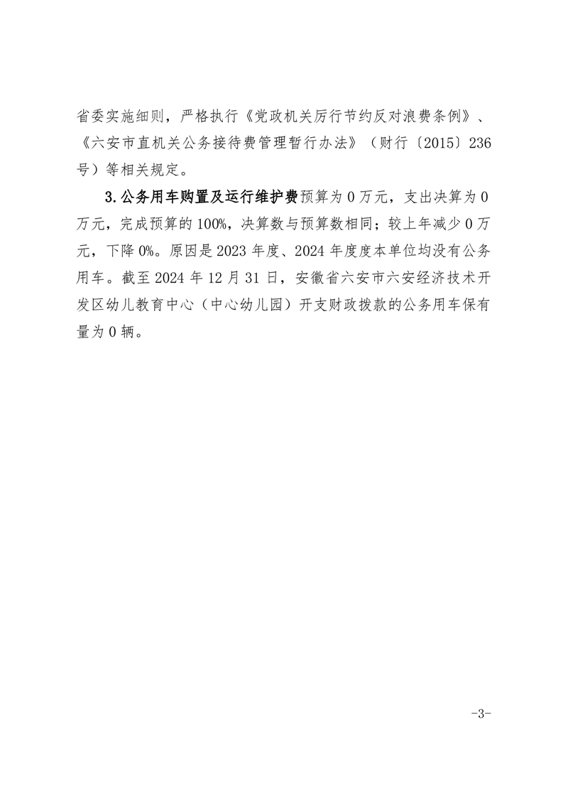 六安经济技术开发区幼儿教育中心2024年度一般公共预算财政拨款“三公”经费决算