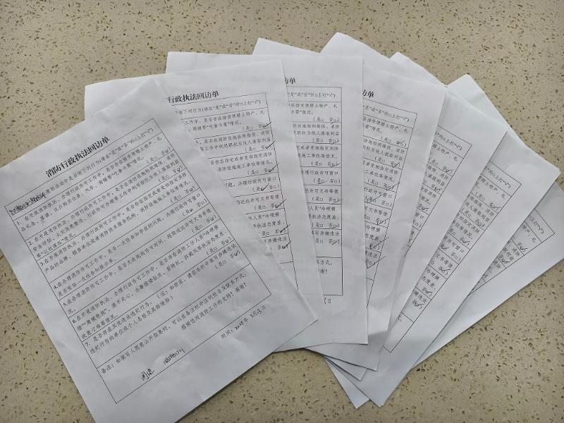 回访过程中,消防救援大队通过实地走访的形式,坚持以公正执法唤起民众公信度为原则,主动向社会单位负责人告知其有关权利和义务,详细询问消防执法人员在执法程序、服务态度、廉洁自律等方面的情况,积极征求对消防部门服务态度、服务质量及服务水平等方面的意见建议。同时,组织社会单位负责人实事求是填写《消防行政执法回访单》,告知在消防监督执法中遇到执法不公、滥用职权等问题,可以随时向消防救援大队举报,大队将及时核实查办、依法依规处理。