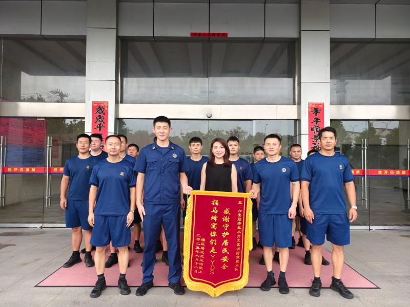 8月26日上午,辖区居民将一面印有“捅马蜂窝你们是YYDS 感谢守护居民安全”的锦旗送到了开发区消防救援大队,并向指战员道谢。