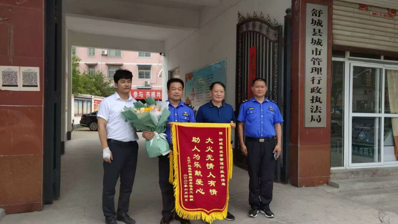 时间追溯到2020年6月1日16时左右,舒城县万佛路附近突然燃起熊熊大火,火势迅速蔓延,威胁着周边家具城和家电仓库的安全。面对这突如其来的危险,朱思春没有丝毫犹豫,立即带领100多名执法队员火速赶往现场。他临危不乱,迅速制定救援方案,一边指挥环卫洒水车与消防战士并肩作战,遏制住火舌的肆虐;一边亲自上阵,带领队员们穿梭于浓烟之中,帮助企业抢运物资,与时间赛跑,与灾难抗争。最终经过三个多小时的艰苦鏖战,他们不仅成功遏制了火势的蔓延,更为社会挽回了数百万元的财产损失。