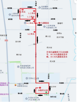 去程:寿春中路公交首末站、五教路衡山路交口、九德路古碑路交口、九德路刘安路交口、隐贤路九德路交口、银雀路隐贤路交口、刘安路银雀路交口